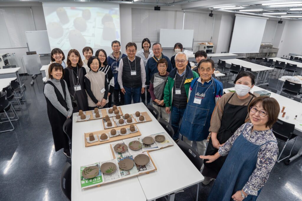 明星SATOYAMA プロジェクトとの共催で昨年度に続き陶芸ワークショップ『タタラと陶印で作るお皿&ポプリポット』を11月8日(土)32号館3階で開催。デザイン学部塩野麻理教授、理工学部柳川亜季准教授、在学生3名のSA、アシスタントにはデザイン学部卒業生の長島さんにもご協力をいただき、22名の同窓生が参加し、無事に終了致しました。